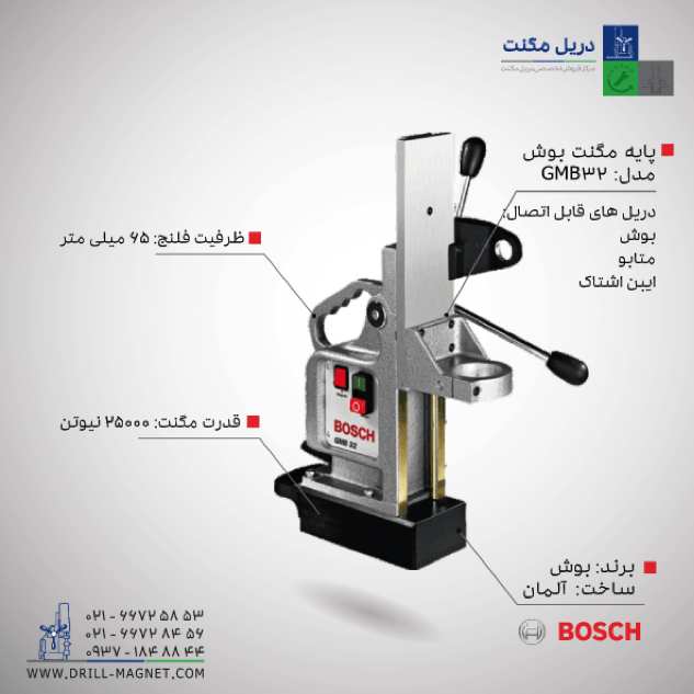 فروشگاه آنلاین دریل مگنت نماینده فروش محصولات بوش در ایران با ارائه خدمات تخصصی فنی به خریداران است. دریل مگنت های گردبر از سایز ۳۰ تا ۵۰،‌ پایه مگنت و … در سایت دریل مگنت در دسترس است.