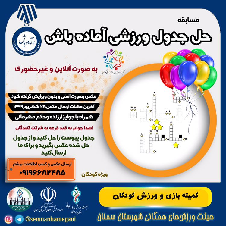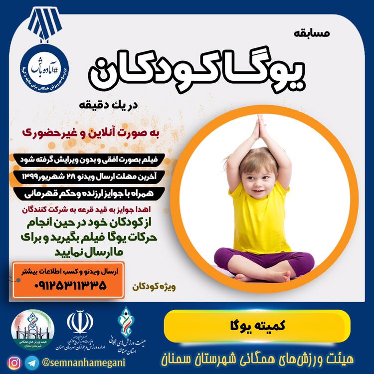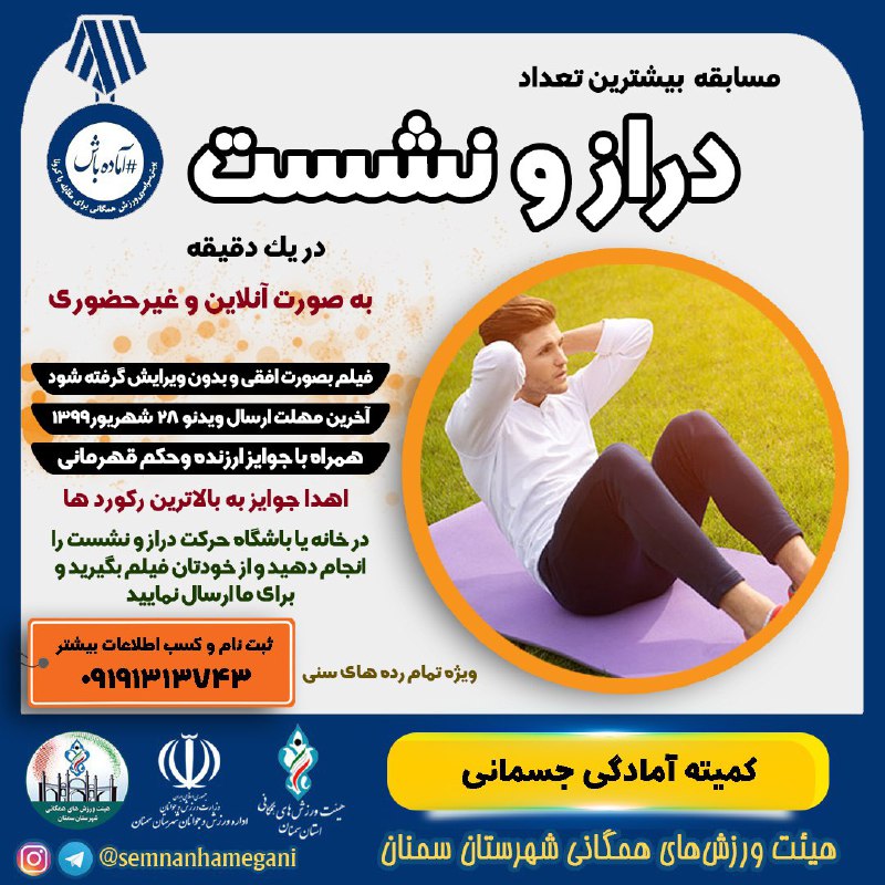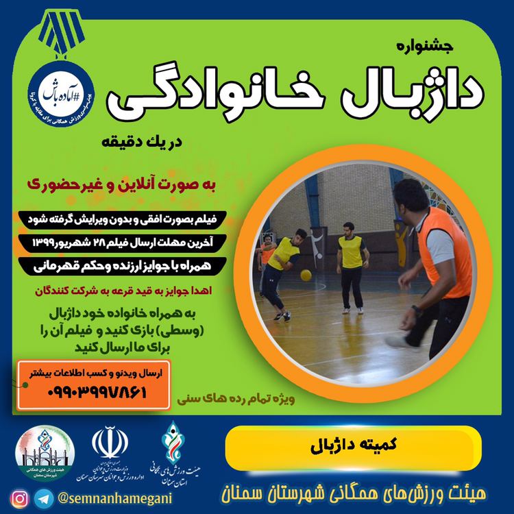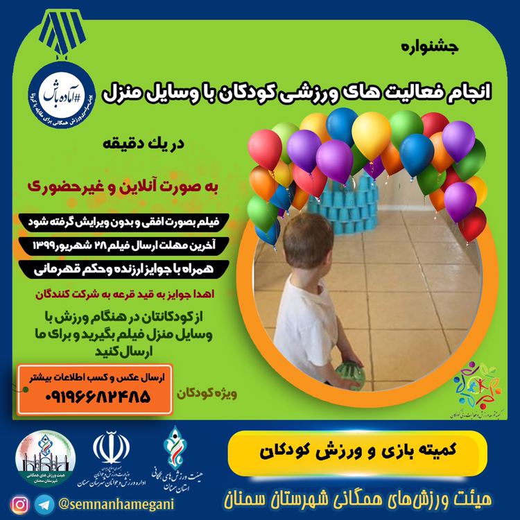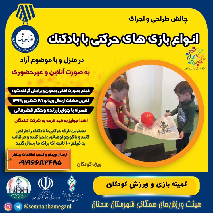 هیئت ورزش های همگانی شهرستان سمنان، پویش سراسری ورزش همگانی برای مقابله با ویروس کرونا را با نام پویش آماده باش برگزار می کند.