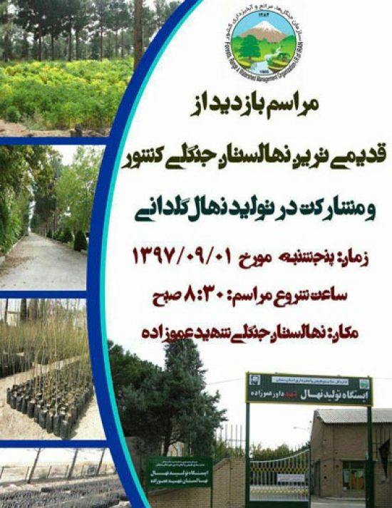 مراسم بازدید از قدیمی ترین نهالستان جنگلی کشور و مشارکت در تولید نهال گلدانی در تاریخ ۱ آذر ماه ۱۳۹۷ از ساعت ۸:۳۰ در نهالستان جنگلی شهید عموزاده سمنان برگزار می شود.