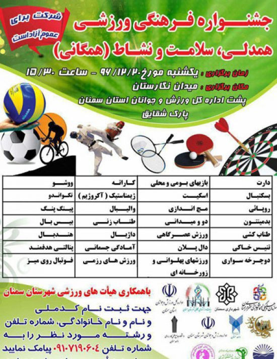 یکشنبه،بیستم اسفند،ساعت ١۵:٣٠ پارک شقایق سمنان.برگزار می گردد.