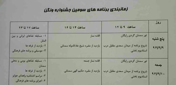 در کنار برگزاری جشنواره ونگن دوره آموزشی آشنایی با گردشگری محلی شهر سمنان نیز برگزار می شود که در پنج شنبه ۹شهریور ماه دوره آشنایی با جاذبه های طبیعی شهر سمنان و جمعه۱۰ شهریور ماه دوره آموزشی اشنایی با جاذبه های تاریخی ،فرهنگی شهر سمنان برپا می شود،و به همین منظور شروع حرکت اتوبوس گردشگری در روزپنج شنبه ۹ شهریور از محل آب پخش کن سمنان (پارا) واقع در ضلع شمال غربی پارک شقایق و بازدید از آب پخش کن و باغات و سیستم تقسیم آب سمنان و شروع برنامه حرکت اتوبوس گردشگری در روز جمعه ۱۰ شهریور از بلوار سعدی ، روبروی شهرداری مرکزی سمنان و بازدید از محور فرهنگی ، تاریخی بافت قدیم سمنان خواهد بود.