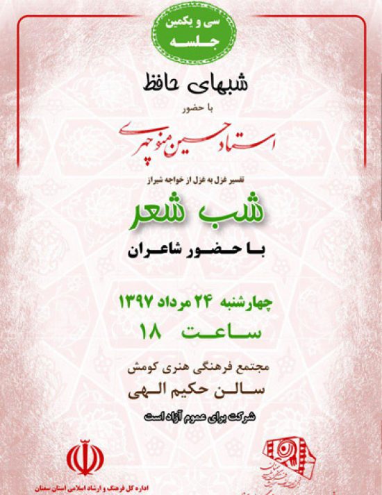 سیویکمین جلسه شبهای حافظ/ تفسیر غزل به غزل از خواجه شیراز