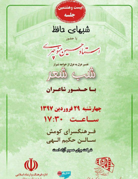 بیست و هشتمین جلسه شبهای حافظ/ تفسیر غزل به غزل از خواجه شیراز