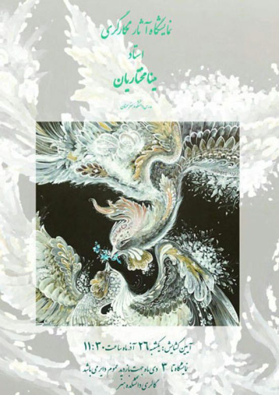 آثار استاد مینا مختاریان مدرس دانشکده هنر دانشگاه سمنان ، در گالری دانشکده هنر این دانشگاه برگزار می گردد.