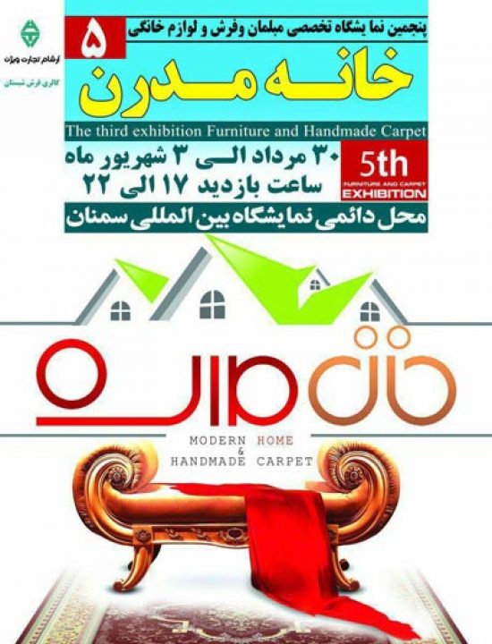 پنجمین نمایشگاه تخصصی مبلمان،فرش و لوازم خانگی با عنوان خانه مدرن از ۳۰ مردادماه لغایت ۳ شهریور ماه در محل دائمی نمایشگاه بین المللی سمنان برگزار میگردد.