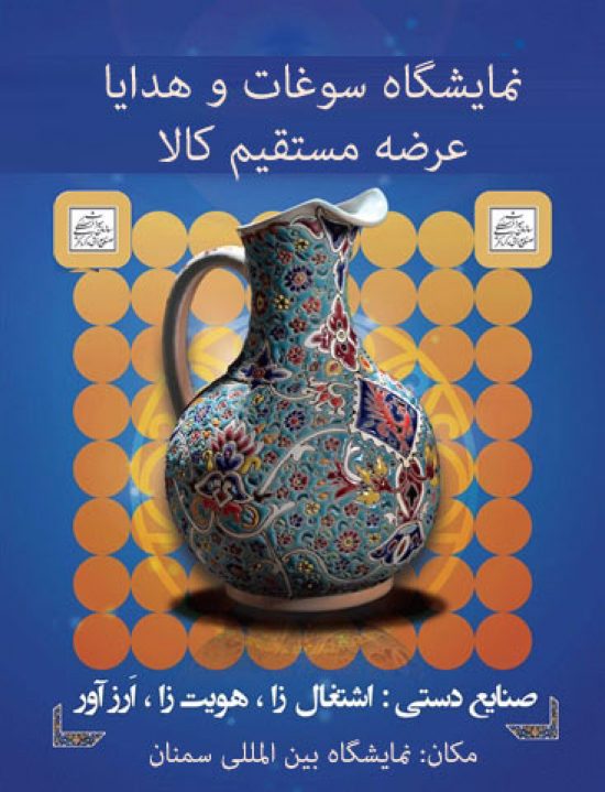 نمایشگاه سوغات، هدایا و عرضه مستقیم کالا از تاریخ ۲۳ مهر ماه ۱۳۹۷ ساعت ۱۶:۰۰ الی ۲۲:۰۰ در محل دائمی نمایشگاه های بین المللی سمنان برگزار می شود.