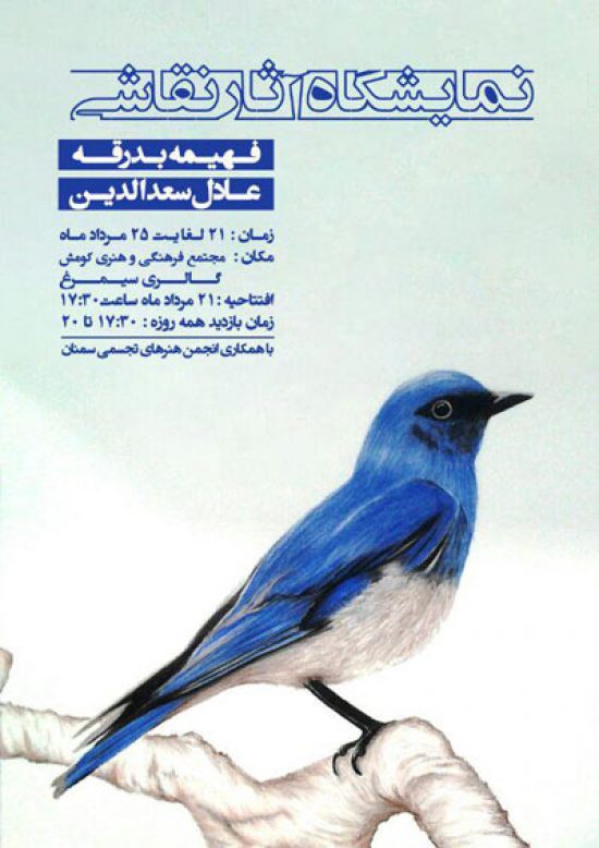 نمایشگاه آثار نقاشی هنرمندان فهیمه بدرقه و عادل سعدالدین،۲۱ لغایت ۲۵ مرداد ماه در گالری سیمرغ مجتمع فرهنگی هنری کومش سمنان برپا میباشد.