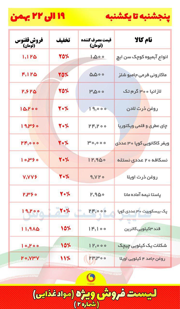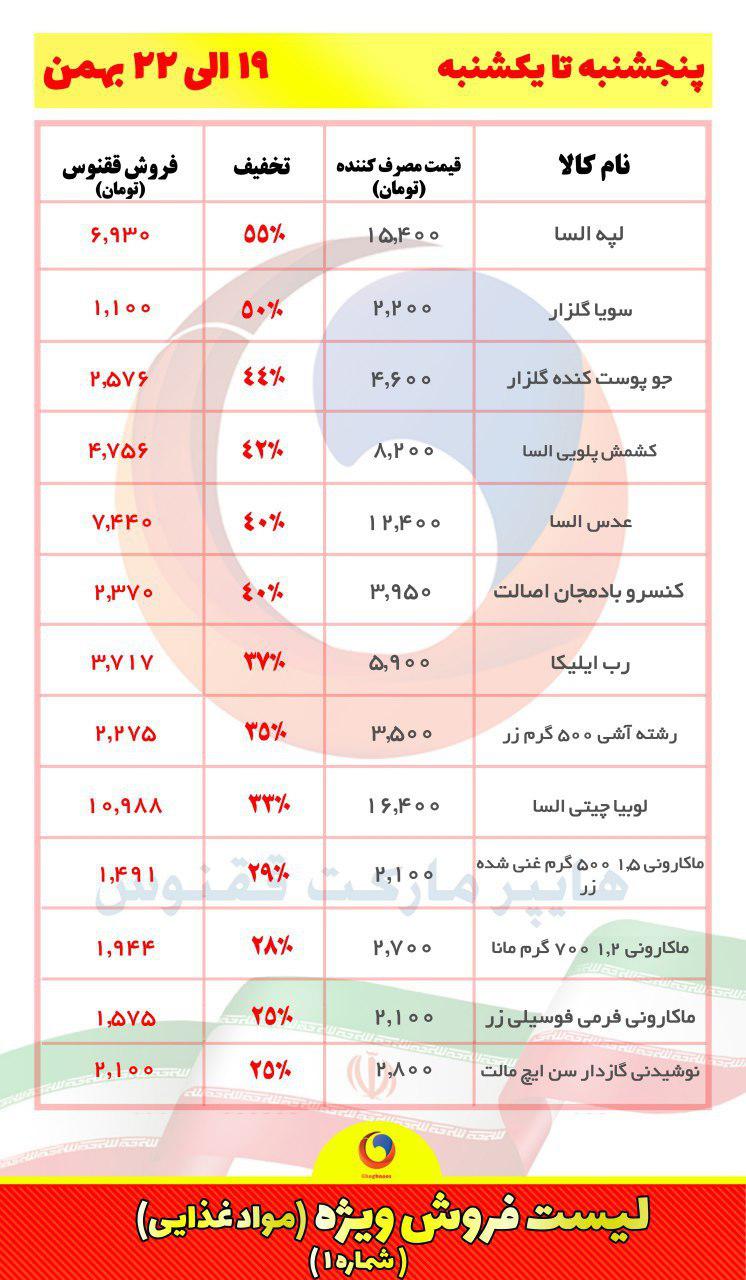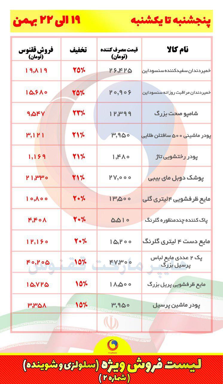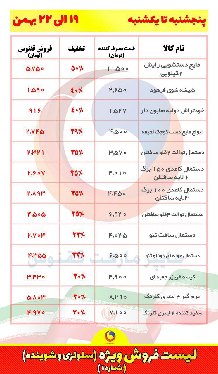 ١٩ الی ٢٢ بهمن تخفیفی ۱۰ تا ۵۰ درصدی برای محصولات سلولزی، شوینده ، غذایی در نظر گرفته است.