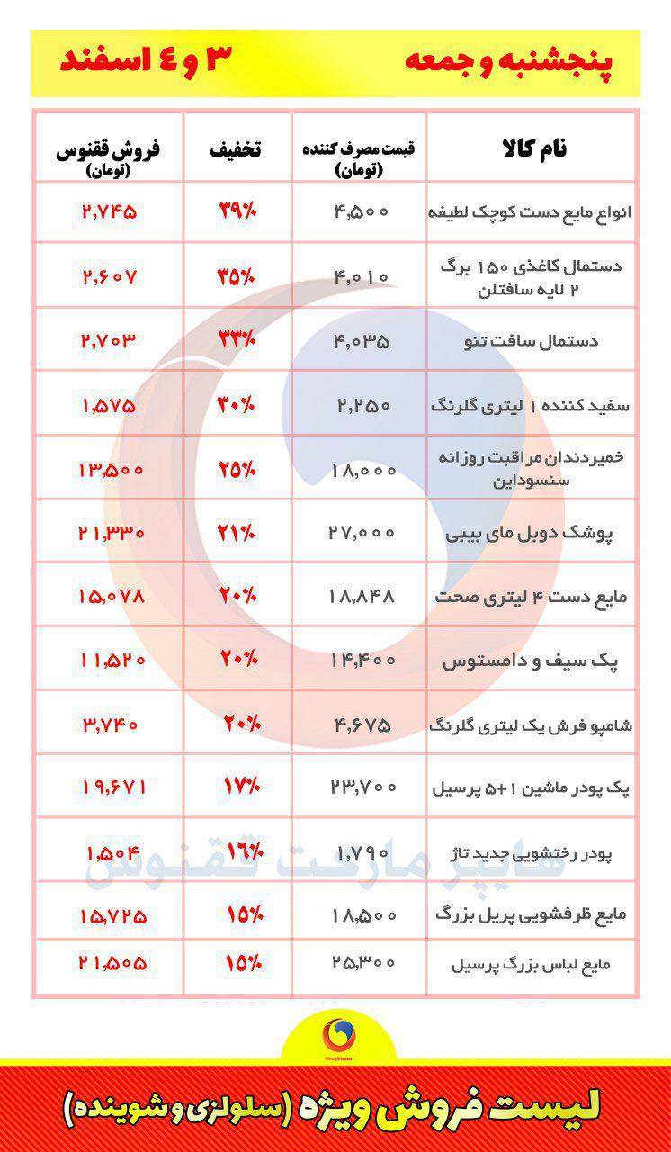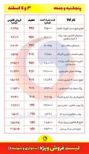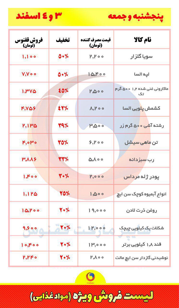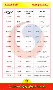 لیست کامل اقلامی که تخفیف دارد و میزان تخفیف در ادامه آمده است.