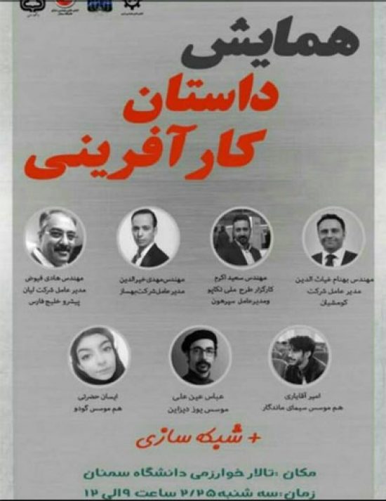 این همایش با حضور افرادی چون مهندس بهنام غیاث الدین،مهندس سعید اکرم،مهندس مهدی خیرالدین،،مهندس هادی فیوض،امیر آقایاری،عباس عین علی و ایسان حضرتی در تالار خوارزمی دانشگاه سمنان برگزار میگردد.
