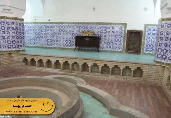این گرمابه در گوشه شمال غربى تکیه پهنه سمنان، بین مسجد جامع و مسجد امام خمینى (ره) و امامزاده یحیى قرار دارد و در سال ۸۵۶ هجرى قمرى در زمان سلطنت ابوالقاسم بابرخان پادشاه تیمورى و به دستور وزیر وى ،خواجه غیاثالدین بهرام سمنانى، ساخته شده است.