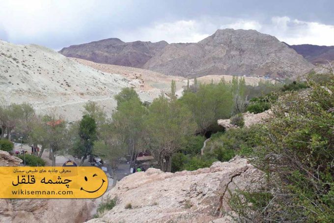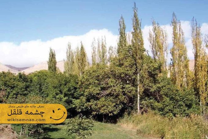 چشمه قلقل در ۶۰کیلومتری شمال غرب شهر دامغان و ۲کیلومتری شمال روستای دشت بو واقع شده است. منطقه دارای گیاهانی چون انواع گرامینه، انواع گون، پونه، علف جارو ، گنگر، قاصدک، گزنه، درختان بید، تبریزی، سپیدار، گردو، باغات سیب و زردآلو است. از جانوران منطقه به گرگ، شغال، خرس، پلنگ، مار، گراز، خوک وحشی و خفاش معمولی می توان اشاره کرد. بهترین فصل بازدید از این چشمه اوایل بهار تا اوایل پاییز است.