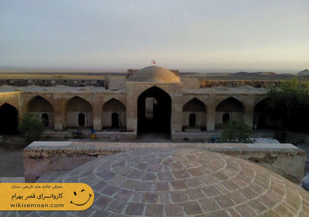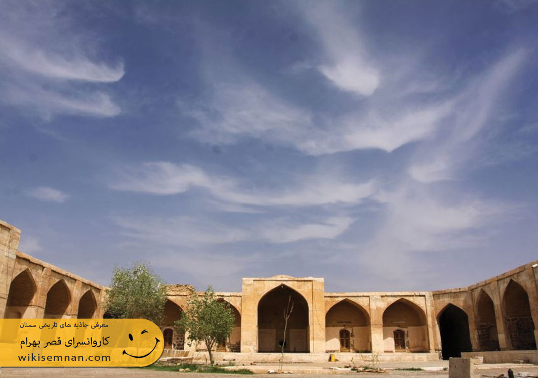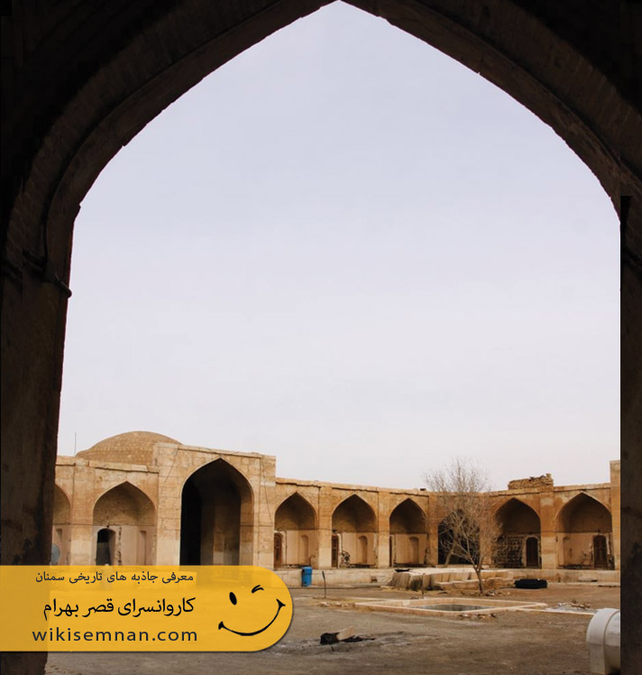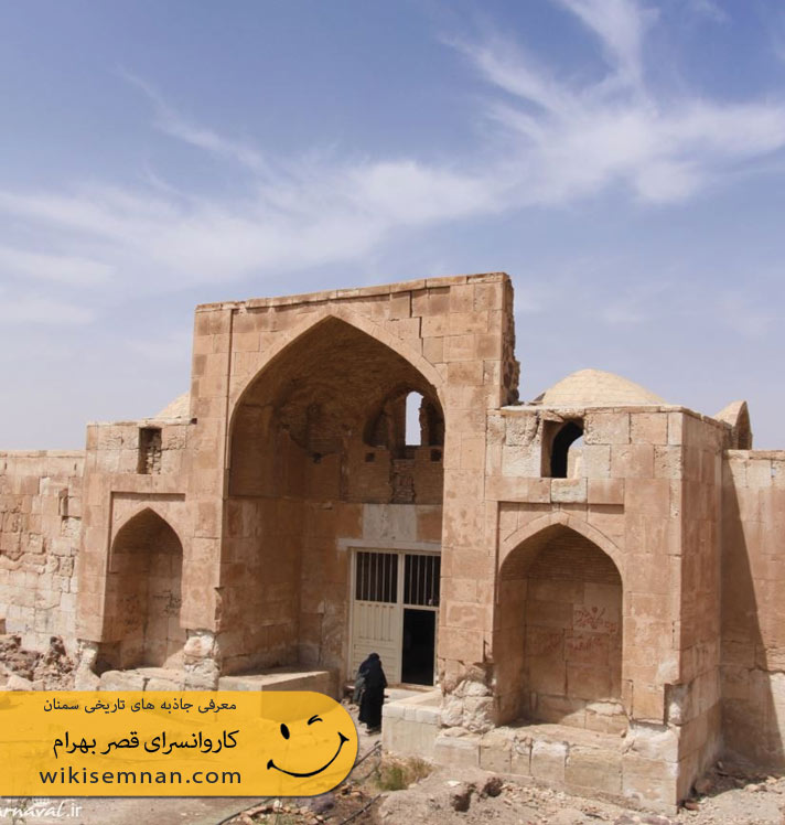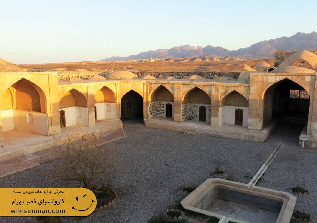 کاروانسرای شاه عباسی قصر بهرام که به کاروانسرای عباسآباد نیز مشهور است و در حال حاضر به عنوان پاسگاه شکاربانی پارک ملی کویرو نیز مهمانسرایی برای اقامت گردشگران و محققین مورد استفاده قرارمیگیرد. این کاروانسرای سنگی توسط سازمان حفاظت محیط زیست با نظارت سازمان میراث فرهنگی تعمیر و مرمت شده است.
