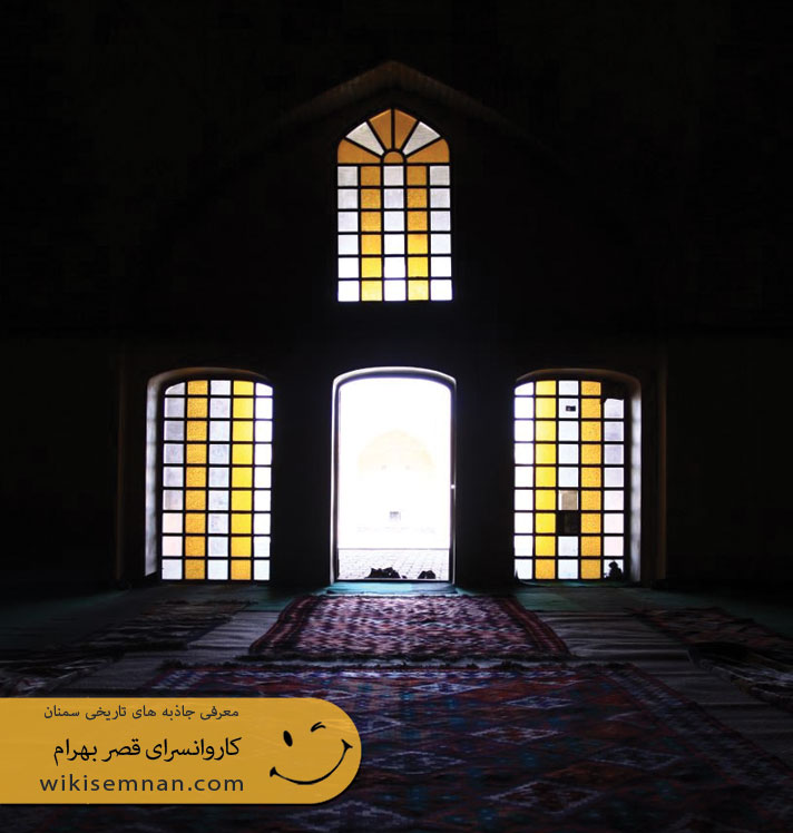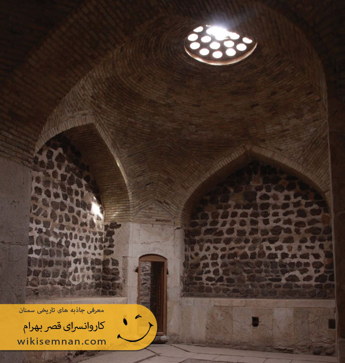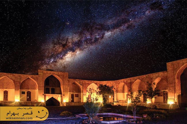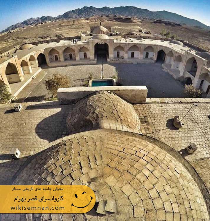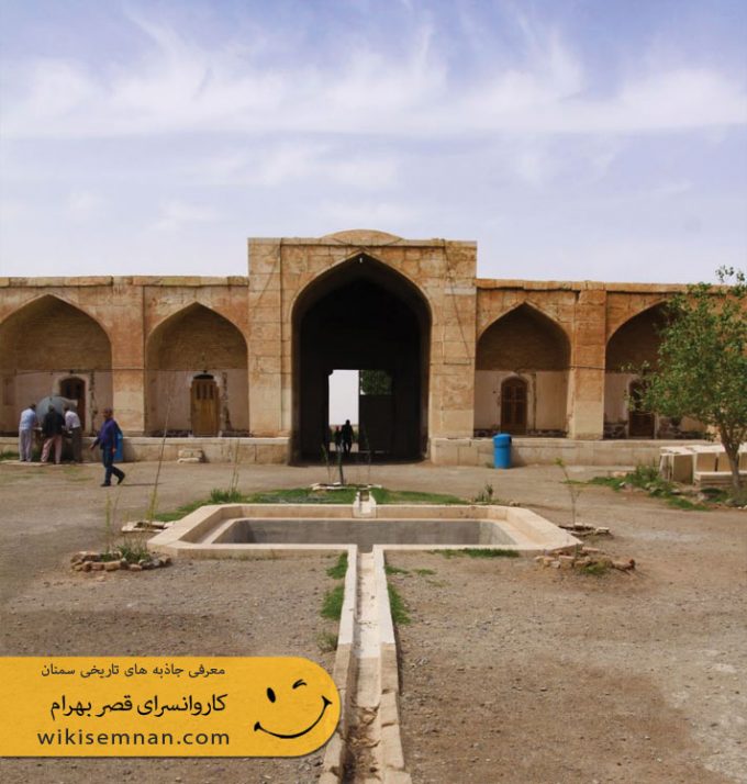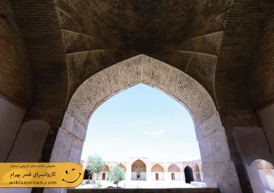 کاروانسرای شاه عباسی قصر بهرام که به کاروانسرای عباسآباد نیز مشهور است و در حال حاضر به عنوان پاسگاه شکاربانی پارک ملی کویرو نیز مهمانسرایی برای اقامت گردشگران و محققین مورد استفاده قرارمیگیرد. این کاروانسرای سنگی توسط سازمان حفاظت محیط زیست با نظارت سازمان میراث فرهنگی تعمیر و مرمت شده است.