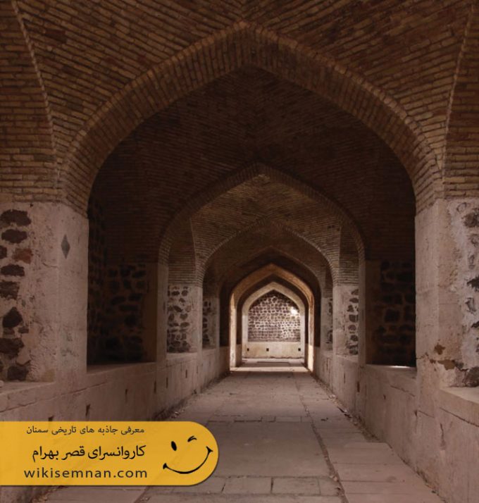 شترخوانها یا اصطبلهای این کاروانسرا به گونهای تعبیه شده اند که کاملاً در پشت اتاقها قرار میگیرند. اطراف این قصر شش برج بنا شده و سر درِ آن، سنگ بزرگ یک پارچه است. در کنار مدخل قصر، سنگهایی قرار داده بودند که پاشنه درِ ورودی در سوراخ آن ها میچرخید.