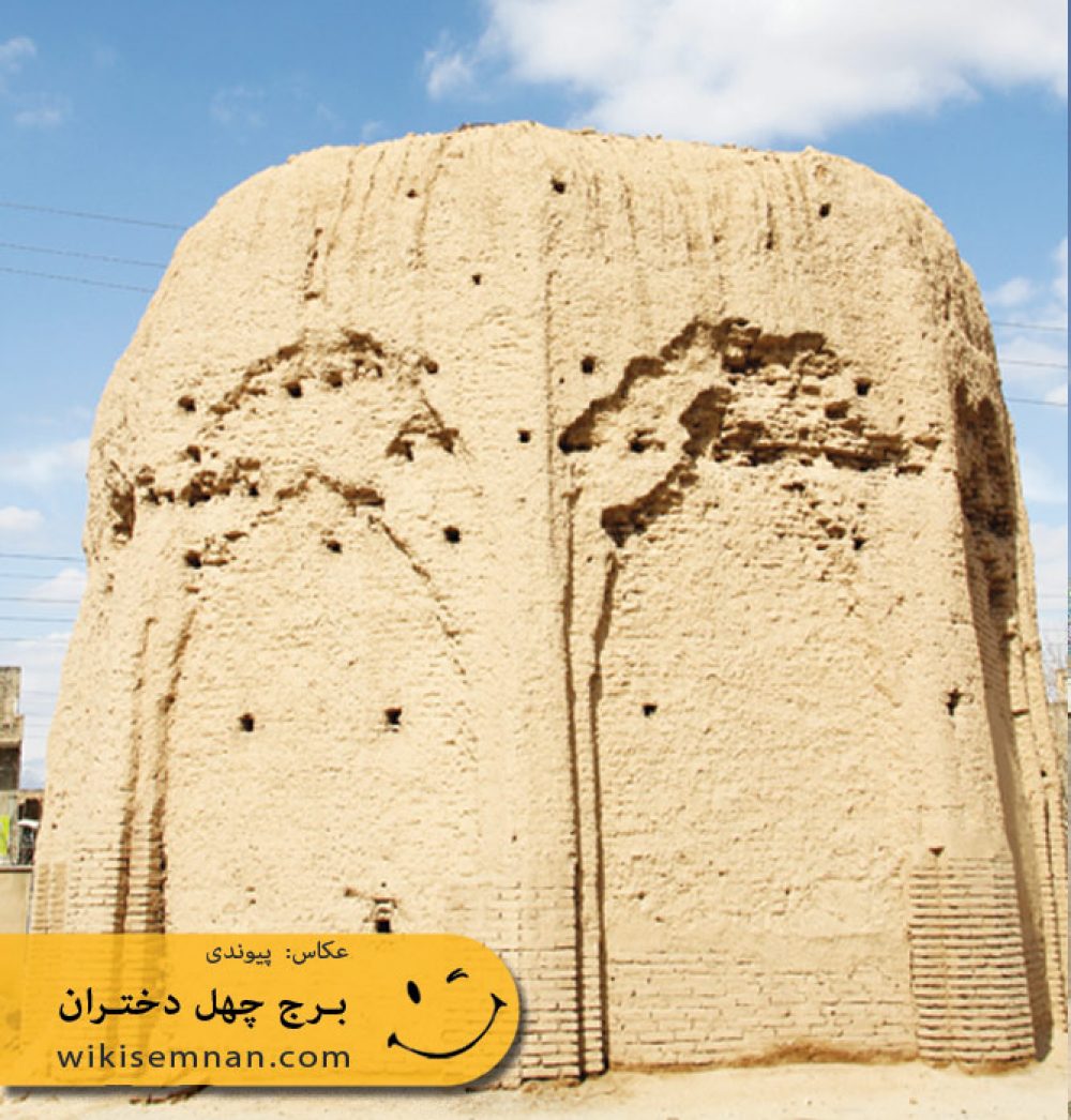 مردم سمنان بنای این برج را به چهل دختر خادم آتشکده نسبت میدهند. عدهای دیگر معتقدند برج مذکور را چهل دختر که دست از تعلّقات دنیوى کشیده و تارک دنیا شده بودند، با گل و خشت ساختهاند.