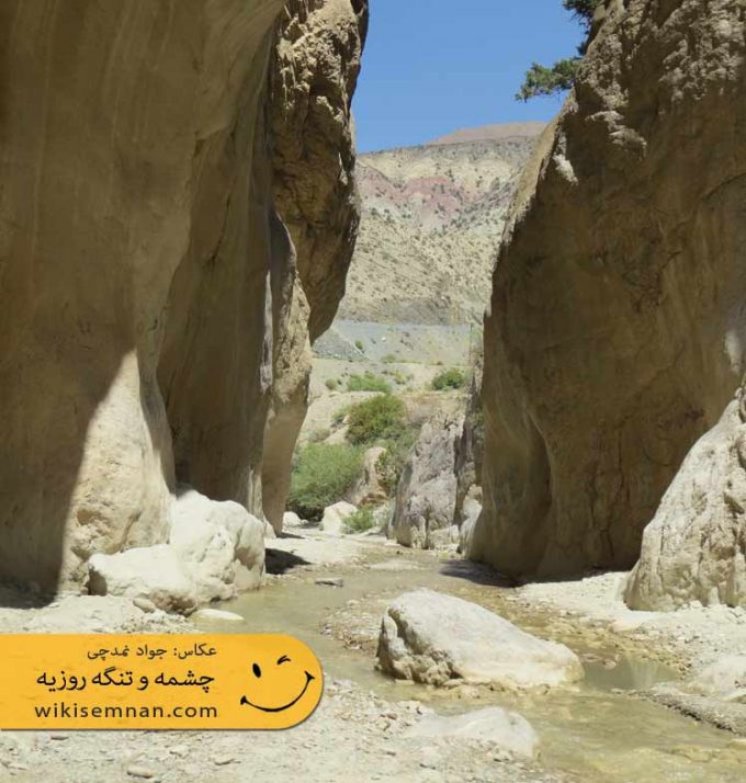 چشمه و تنگه روزیه در شمالیترین نقطه شهرستان سمنان و بین استان سمنان و مازندران قرار دارد. چشمه روزیه در روستای چاشم و از طرفی در۵ کیلومتری روستای لرد خطیرکوه واقع شدهاست و تنگه آن، از دامنه شمالی کوه اُرُم آغاز و پس از طی هشت کیلومتر پایان مییابد. پیمایش این دره که از شمال غرب آغاز و به سمت جنوب شرق پایان می پذیرد نیازمند ابزار و دانش سنگنوردیست، اما بازدید از دهانه شمال غربی آن برای همگان امکان پذیر است.