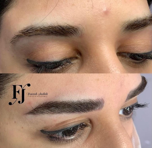 پر کردن جاهای خالی ابرو و فرم دهی به ابروهای بی حالت و متقارن سازی ابروهای نامتقارن به صورت کاملاً طبیعی و با ظرافت بالا، ظریف تر از تار ابرو به روش فیبروز، با استفاده از بهترین و بهروزترین متریال و رنگ های اورجینال آمریکایی در سمنان توسط پیگمنتر فائزه جدیدی در سالن تخصصی انجام میشود.