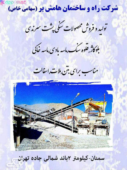 این شرکت بزرگ تولیدکننده ی مصالح سنگی پشت سرندی، بلوکاژ، قلوه سنگ، ماسه بادی و ماسه خاکی مناسب برای بتن، ملات و آسفالت است.
