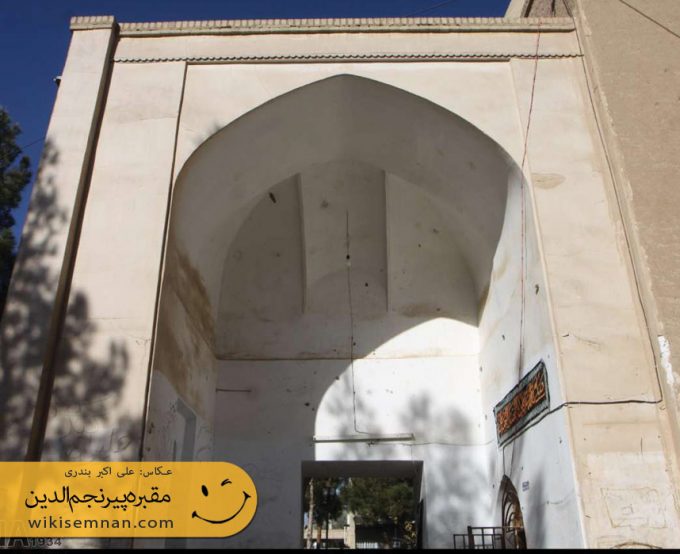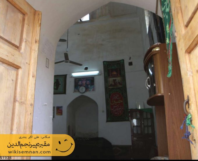 قسمت غربی حرم و رو به قبله، محراب بلند و ساده‌ای به چشم می‌خورد که چیزی جز یک فرو رفتگی بیش نیست و در سه گوشه بقعه طاقچه‌های بسیار کوچکی جهت روشن کردن شمع ایجاد نموده‌اند. روبروی آرامگاه پیر نجم‌الدین دو ستون خشتی بسیار بزرگ از خشت خام وجود دارد که برخی از مردم آن را مقبره فرزندان امیر تیمور گورکانی می‌دانند.