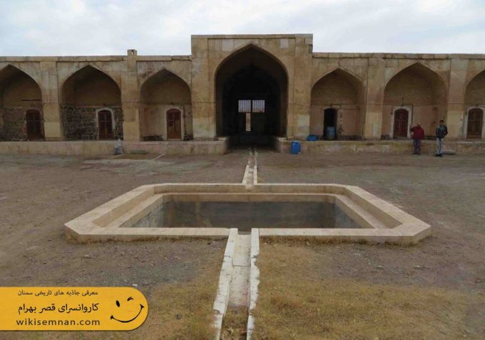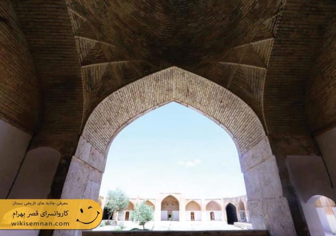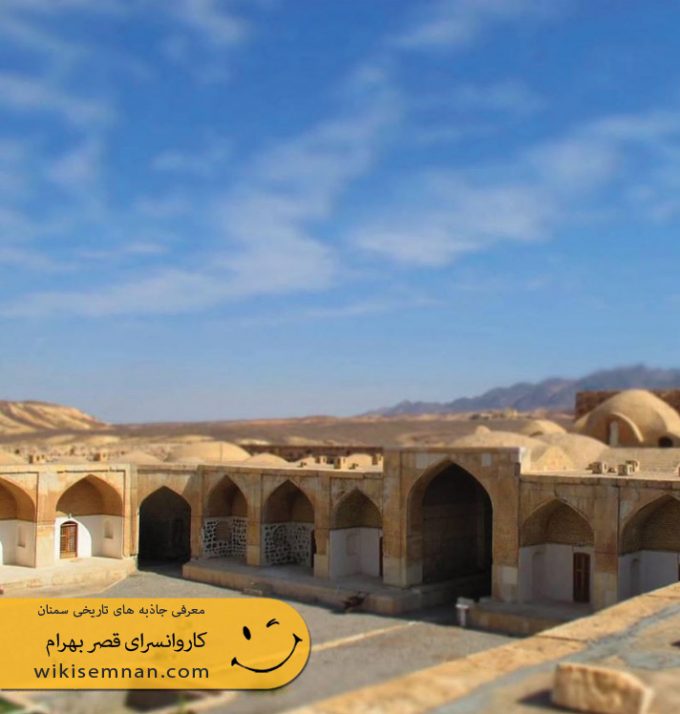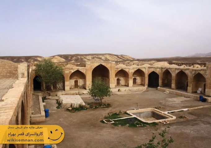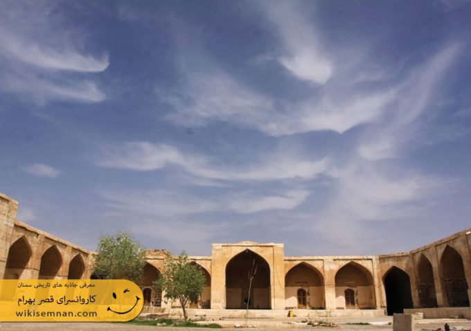 کاروانسرای شاه عباسی قصر بهرام که به کاروانسرای عباسآباد نیز مشهور است و در حال حاضر به عنوان پاسگاه شکاربانی پارک ملی کویرو نیز مهمانسرایی برای اقامت گردشگران و محققین مورد استفاده قرارمیگیرد. این کاروانسرای سنگی توسط سازمان حفاظت محیط زیست با نظارت سازمان میراث فرهنگی تعمیر و مرمت شده است.